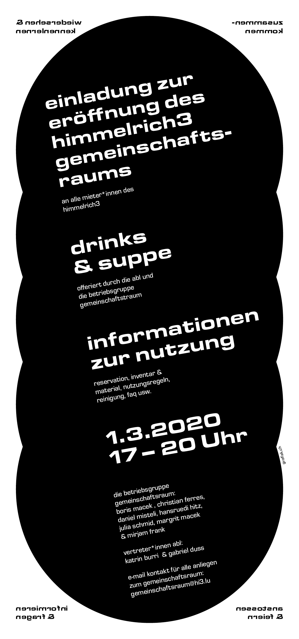 Daniel Beyelereinladung zur eröffnung des himmelrich3 gemeinschaftsraums an alle mieter*innen des himmelrich3